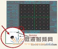 图9为有入侵信号的星座图。一般来说,上述广义噪声它的图形大都集中在中心附近,由于某一瞬间有入侵信号,它会较远离中心,如图9小园图,入侵信号偏离中心较远,也可能跳出本框,那就产生误码了。