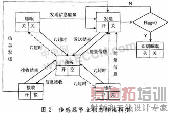 感知状态 传感器模块开启,通信模块关闭,节点感知事件发生;