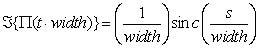 也可以使用傅立叶变换把脉宽转换成频率表示。在傅立叶表示,时域中的脉冲可以描述为矩形函数 ( (t))。在这个函数变换到频域中时,它产生sinc函数 (sinc(s))。这两个域之间定标再次通过相似性定理实现,两个域之间存在相反的关系(即时域中的脉冲越窄,频域中的sinc包络越宽)。