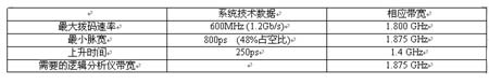 逻辑分析仪以类似示波器前端的方式指定其前端电路的带宽。在确定逻辑分析仪是否有充足的性能调试某个数字信号时,可以使用前面的变换。可以通过实例最好地说明这一点。系统对数字信号的技术数据如下,每个技术数据都可以转换成模拟带宽。逻辑分析仪必需有足够的带宽,以适应最高的模拟频率。