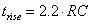 由于上升时间定义为VOUT从10%转换到90%使用的时间,我们可以对公式求解,得到两个单独的求解。第一个求解是从0伏转换到VOUT的10%所需的时间。为完成这一求解,VIN设成1 V,VOUT设成0.1伏。第二个求解以相同方式获得,但VOUT设成0.9伏。由于上升时间定义为这两个求解之间的时间,因此把两个结果相减,得到RC电路上升时间的经验法则。