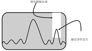 如图6所示,实时频谱分析仪画出一个模板,定义分析仪实时带宽内产生触发事件的条件集合。