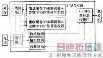 CMX860是一块通用的低功耗电话机信令收发集成电路。CMX860包含DTMF编码解码器、V.23调制解调器,具有铃流检测、话机摘机检测等功能,它可以广泛应用于由线路提供电源的电话设备。