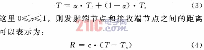 设UWB信号在T0时刻被发送,在接收端节点接收到的首次到达信号和幅度最强信号的到达时刻分别为Tf和Ts,而直达信号到达时刻通过下式计算: