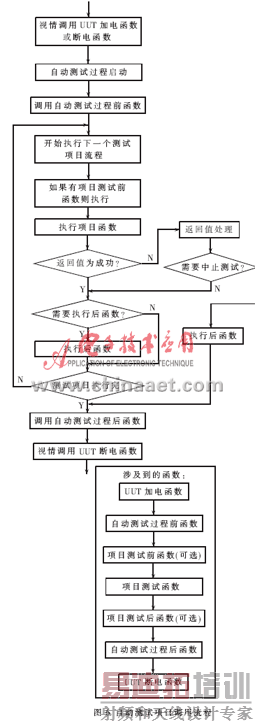 前(后)函数和项目测试前(后)函数。函数实现代码可根据实际需要添加,但不允许在该函数中添加与格式化类或硬件控制有关的任何代码。利用该函数可以实现一些测试过程的特殊要求,如:UUT测试或项目测试准备和撤收注意事项的提示。测试前(后)函数由测试程序主框架在启动自动测试流程前(测试流程结束后)调用。