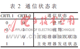 主处理器与PL-III的通信状态是由两个控制线(即初始形式)来决定的,对应关系如表2所示。