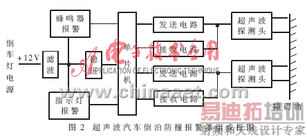 超声波汽车倒泊防撞报警器的组成如图2所示。