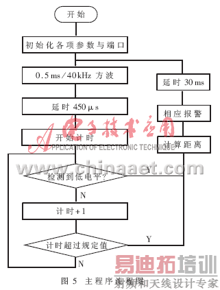 超声波汽车倒泊防撞报警器的软件采用汇编语言。程序流程如图5所示。
