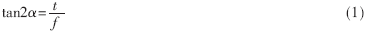 式(1)中f为成像透镜的焦距,通过测量t,即可以计算出倾角α的值。