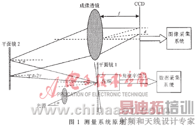 (2)式中, f为成像透镜的焦距, α为入射光线与水平面之间的夹角,所以只需准确地测出d的值,即可得到陀螺仪转动的角度γ: