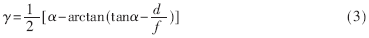 d=f tanα-f tan(α-2γ) (2)