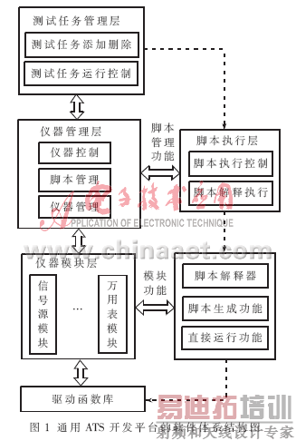 该层作为中间层,主要实现向上提供统一的调用接口,对下层的仪器模块实现管理。另外,该层还完成脚本的管理、编辑,在该层实现测试任务脚本的生成。