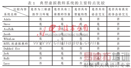 目前,虚拟教师系统还有很多。表1对一些典型的虚拟教师系统进行了比较。通过研究发现,目前虚拟教师的研究重点是构建一个高逼真度的虚拟教师人物形象,除了具有接近真实人物的外在表现外,还要具有真实的动作行为,并且具有一定的智能性,但目前已有的研究还没有涉及到利用体态语(肢体语言)在网络教学中实现交互的问题。