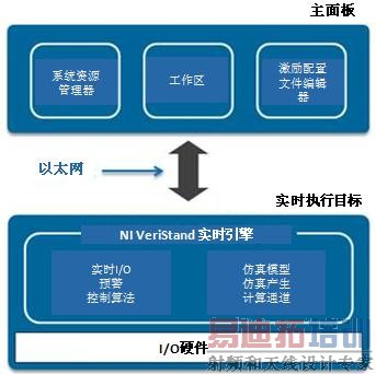 NI VeriStand 实时测试应用程序通常包括一个或多个实时执行目标,这些目标通过以太网与主机系统进行通信。每个实时执行目标运行NI VeriStand 引擎,该引擎通过Windows主系统进行配置,通过以太网部署。一旦您的NI VeriStand引擎配置完成部署,您就可以使用NI VeriStand 工作区窗口和其所提供的工具,如激励配置文件编辑器,在运行时与您的测试系统进行交互。