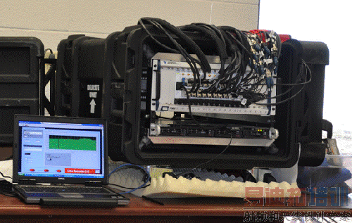 另外,足够的存储空间也是十分重要的,152个通道一个测量区域在96000Hz采样速率下30秒产生的数据超过1.75GB。我们可以利用沿着喷流在不同引擎能量状态下对多个测量区域进行测量,对喷流进行特征提取;因此,数据用非专用的二进制格式存储。我们可以使用在太阳光下可以阅读的运行Windows操作系统的远程桌面控制并监视数据采集,用无线方式或是连线到控制器。数据存储系统在MIL-SPEC运输箱中。