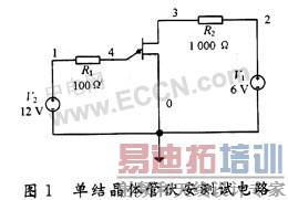 Multisim 10的元器件库提供数千种电路元器件供实验选用,虚拟测试仪器仪表种类齐全,有一般实验用的通用仪器,但没有晶体管图示仪,只能测试晶体三极管、PMOS和NMOS伏安特性曲线,不具备测试单结晶体管的伏安特性的功能。可以利用Multisim 10强大的仿真功能,对单结晶体管的测试电路进行数据采集。