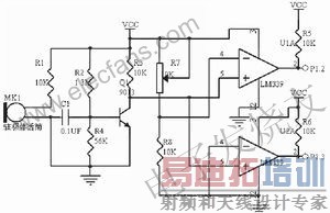 驻极体传声器是一种微型声电转换器,这种传声器具有灵敏度高、频率响应范围宽和体积小等优点。在本系统中选用驻极体话筒作为声音检测部分的声音传感器,用其将声音信号变换成电信号。