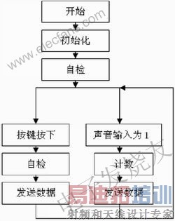 单片机部分的软件主要可以分为以下几个模块:自检模块、发射模块和计时模块。单片机主程序流程图如图4所示。