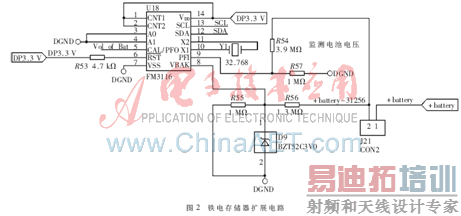铁电存储器用来存储每次气体浓度测量结果、监视电池电压、产生硬件看门狗并提供系统时钟。其扩展电路如图2所示。