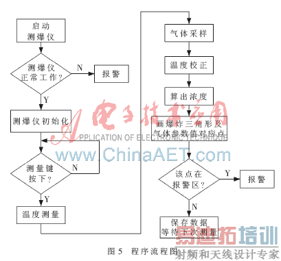 软件设计包括:初始化程序设计、仪表调试模块、人机交互模块软件实现、传感器采集模块、爆炸三角形判断、惰性参数计算、气体浓度预测。图5为流程图。