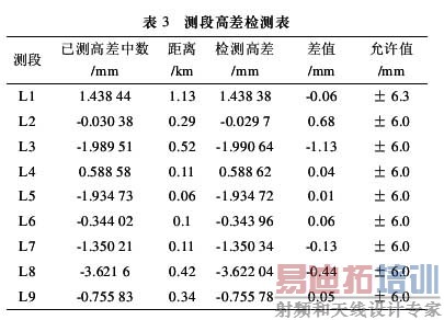本工程从选埋点阶段、观测初期和中期到结束阶段,工程负责人不定时到外业进行检查和指导工作,并检测了作业小组已经观测的 9 个测段,检测高差差值最大为 1.13 mm,最小为 0.01 mm,平均为 0.3 mm(如表 3),可见观测成果的精度非常高,完全可以满足轨道交通工程各环节的高程控制要求。