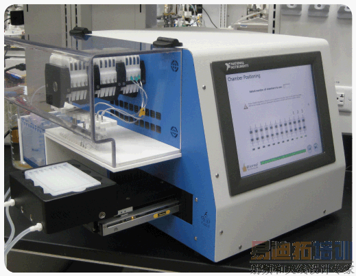 我们的软件工程师采用LabVIEW和CompactRIO,仅用了3个月的时间,就创建了一个复杂的自动化仪器。该仪器包括多轴运动控制(步进电机),精确的保温室温度控制,和复杂的流体处理( 电阀门矩阵控制)。我们采用LabVIEW Real-Time和LabVIEW FPGA模块开发软件架构。采用LabVIEW NI SoftMotion 模块进行实际运动仿真,使我们在制作物理原型之前可以预测和优化设计,以及评估不同设计理念。利用LabVIWE和CompactRIO,我们的开发时间从12个月减少到3个月,并且避免了开发定制控制软件和驱动的必要。
