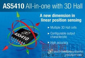 全球领先的高性能模拟IC设计者及制造商奥地利微电子公司(SIX股票代码:AMS)近日推出全球首款基于全功能3D霍尔平台的线性位置传感器AS5410。独特的3D霍尔传感器解决方案可在汽车和工业应用中感应绝对位置,提供超高分辨率的位置信息。该传感器解决方案在伊利诺伊州罗斯蒙特举办的2011年传感器博览会暨研讨会上展出,奥地利微电子公司的展位号为621。