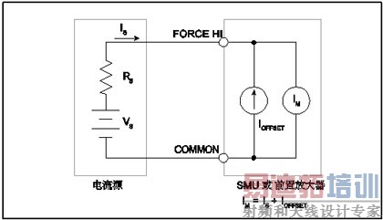对于理想的安培计,当其输入端子保持开路时,其读数应为零。然而,现实中的安培计在输入开路时确实存在小电流。这一电流被称为输入偏移电流,是由于有源器件的偏置电流以及流过仪器中绝缘体的漏泄电流产生的。SMU内产生的偏移电流已包括在吉时利4200-SCS型的技术指标中。如图1所示,输入偏移电流增加至被测电流,所以仪表测量的是两个电流之和。