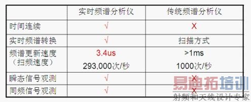 图3: 实时频谱分析仪和传统频谱分析仪的区别。