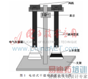 电动式干湿球温度计一般须配置[2]:温度传感器两只(采用AD590)、通风装置、上水装置。