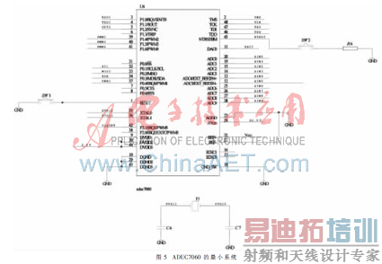 其中2.5 V分模拟和数字两路供电,这是模拟控制器常见的保证精度和抗干扰的一种重要手段。处理器的最小系统如图5所示。