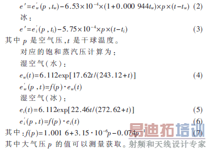e′w 是在气压为p、湿球温度为tw时相对于水面的饱和水汽压,e′i 是在气压为p、湿球温度为ti时相对于冰面的饱和水汽压,