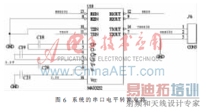 本文还采用串口接口电路、LED显示电路(以及可选的气压测试电路、电机速度测量和控制电路)来提高系统的性能。图6所示为串口电路。