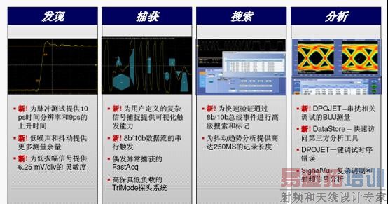 图4:从发现、捕获到搜索、分析,DPO/DSA70000D系列33GHz示波器囊括了多个行业第一和关键创新点。