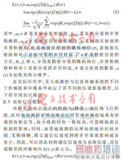 无人机测控与信息传输系统是整个无人机系统设计中的关键,而传输信道则是无人机测控与信息传输系统设计的重要依据。因此,研究无人机测控与信息传输系统的传输信道,不仅对信道的可用性分析、载波频率的选择和无线网络的规划具有重要意义,而且对于传输技术的选择和数字接收机的设计起着至关重要作用。