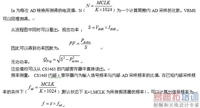 图9为CS5463内部数据测量流程图。根据CS5463芯片手册的公式[2]: