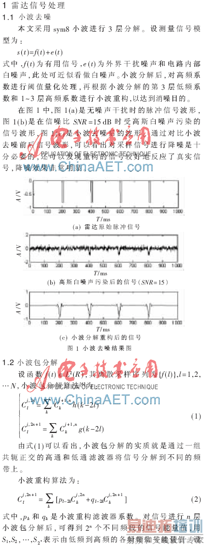 随着高新技术广泛用于军用雷达,使得雷达系统变得越来越复杂,但操作更加简单和智能化。现代战争中,雷达的作用也越来越重要,战场不仅要求雷达具有全天候的作战能力、优越的性能指标、极高的自动化程度及高可靠性,更重要的是要求雷达维修保障人员能够进行战场快速抢修,确保雷达装备的完好率。因此,对于雷达装备的智能化维修保障也提出了更高的要求。人工神经网络[1]存在训练样本大、隐层节点数目选取等问题;专家系统[2]由于依赖于雷达专家知识,运用某种规则进行推理,因此在自适应能力和学习能力方面存在局限性。本文针对当前基层部队无法对电路板进行维修的现状及难点,提出了基于小波去噪及小波包变换与最小二乘支持向量机相结合的雷达故障诊断方法,并基于此设计了某型雷达电路板故障诊断系统,旨在提高部队基层雷达装备自我维修保障能力,确保战时能够实现战场的快速抢修。应用结果表明,该方法提高了雷达故障诊断的有效性和优越性。