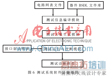 测试系统软件主要包括文本编译模块、测试矢量生成模块、测试运行模块、故障诊断模块、交互调试模块等部分。