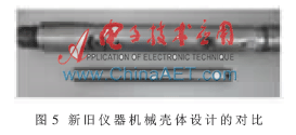 新概念动态测试要求测试仪器不能影响到被测体的运动规律,因此,测试仪器的体积要尽可能小[5]。但是,考虑测试系统要在高温、高压、高冲击的恶劣环境下工作,同时射孔和压裂过程中温度和压力会发生突变,所以壳体设计只能在保证指标的前提下尽可能地减少冗余件设计,降低外壁厚度。机械壳体的材料选择高强度合金材料钛合金。图5为新旧仪器的对比。