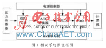 本测试系统主要由以下几部分组成:传感器、信号调理电路、A/D转换器与存储电路、中心控制电路、通信设备和计算机等。测试系统原理框图如图1所示。