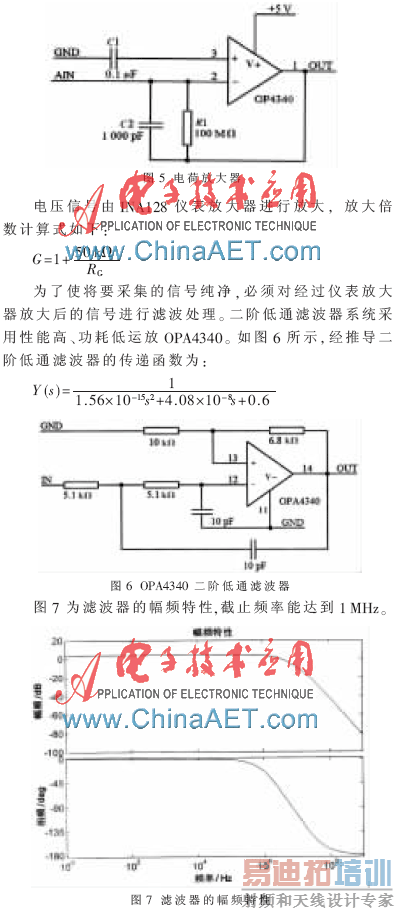信号调理电路由三部分组成:电荷放大器、仪表放大器和低通滤波器。