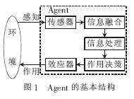 Agent(代理)概念起源于人工智能领域,是指用于模仿人类能力的自主实体,驻留在某一环境下能持续、自主地发挥作用。Agent的基本结构如图1所示。