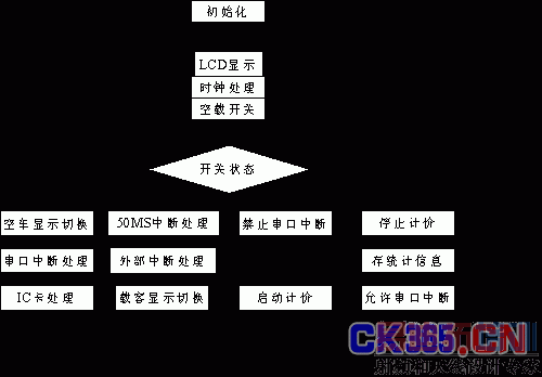 这部分要完成禁止串口中断和启动计价。启动计价是为载客部分要完成的计价、计时程序做一些初始化的工作。例如要读出计价参数,给计程、计时、总误时单元清0,判断是否是夜班,启动定时器等。