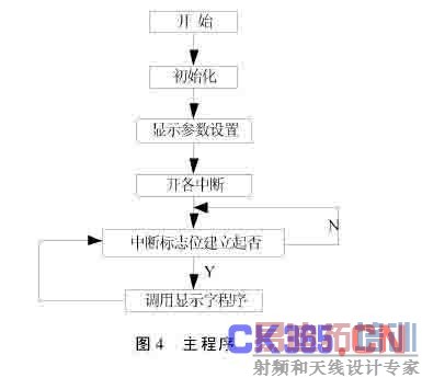 嵌入式软件主要完成对实时采样以及及时的送数据给LCD进行显示。为了达到实时的目的并且又不失真地再现ECG信号,采取每采一个数据就显示一个数据的方法;数据的采样在中断中实现,即每隔1ms就进入定时器中断进行采样,采样完成后进入显示数据主程序。其程序流程图见图4、图5: