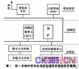 而结构的改变和通信网络技术的进步,变电站通信系统最终将成为如图2所示的结构。现场过程总线和站级总线合二为一,最大程度地实现信息共享和系统集成。