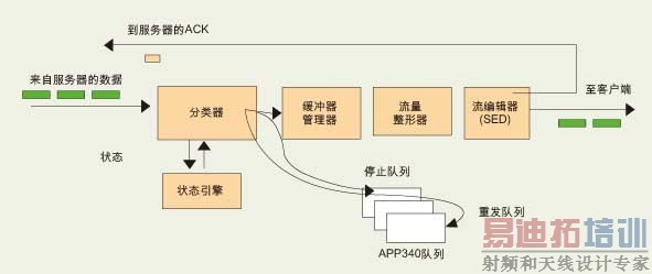 APP340允许流量整形功能模块控制每个队列的数据包调度。NP为每个数据流维护多个目的队列,包括到客户端的主要传输、到客户端的数据包重发以及到服务器的传输。