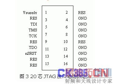 计算机的并行口和Embest PowerICE for ARM仿真器的DB25接口通过标准的DB25公、母转换电缆连接。Embest PowerICE for ARM仿真器通过一个的IDC头的直通电缆(1-1, 2-2,… 20-20)与目标板的JTAG接口相连接。20芯的Embest PowerICE for ARM仿真器接口的定义如图3所示: