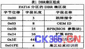 (1)写DBR扇区。将DBR扇区设在CF卡的起始位置。在DBR扇区中的内容如表1所示。