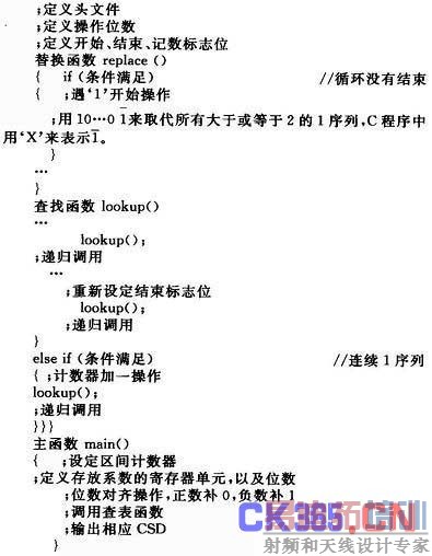 根据前面所列举的最佳CSD编码方法,用C语言生成最佳CSD编码,部分伪代码如下: