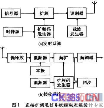 直接扩频通信就是在发射端利用高速率扩频序列去扩展信息数据的频谱,包括伪码调制和载波调制这两个过程。与一般常见的窄带通信方式不同,主要体现在信息数据经扩展频谱以后成为宽带信号,再经过相关处理恢复成窄带信号后解调出信息数据,因此它具有信号相关处理和伪随机编码调制两大特点。